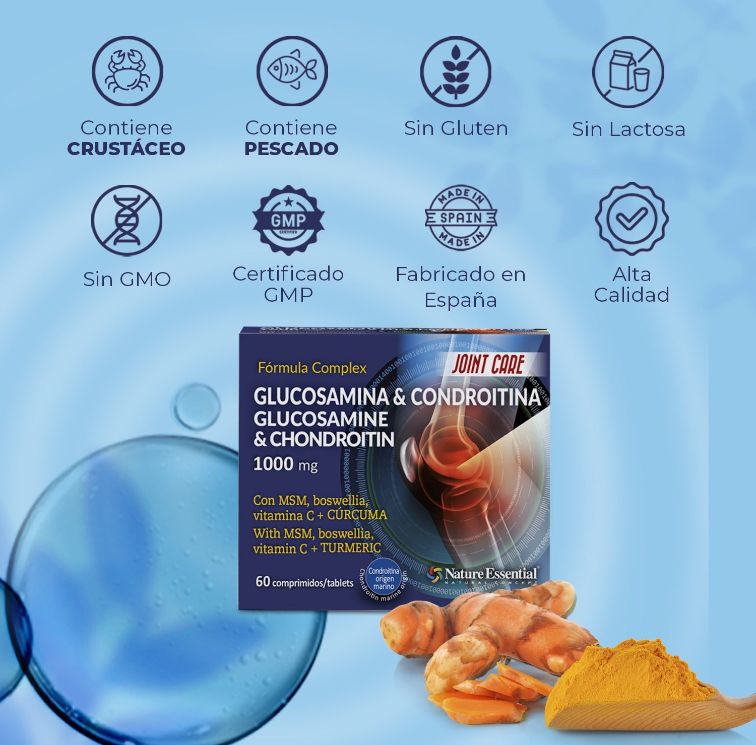 🦵 CUIDADO DE LOS CARTÍLAGOS: La combinación de glucosamina, condroitina y MSM está formulada para la salud de las articulaciones.