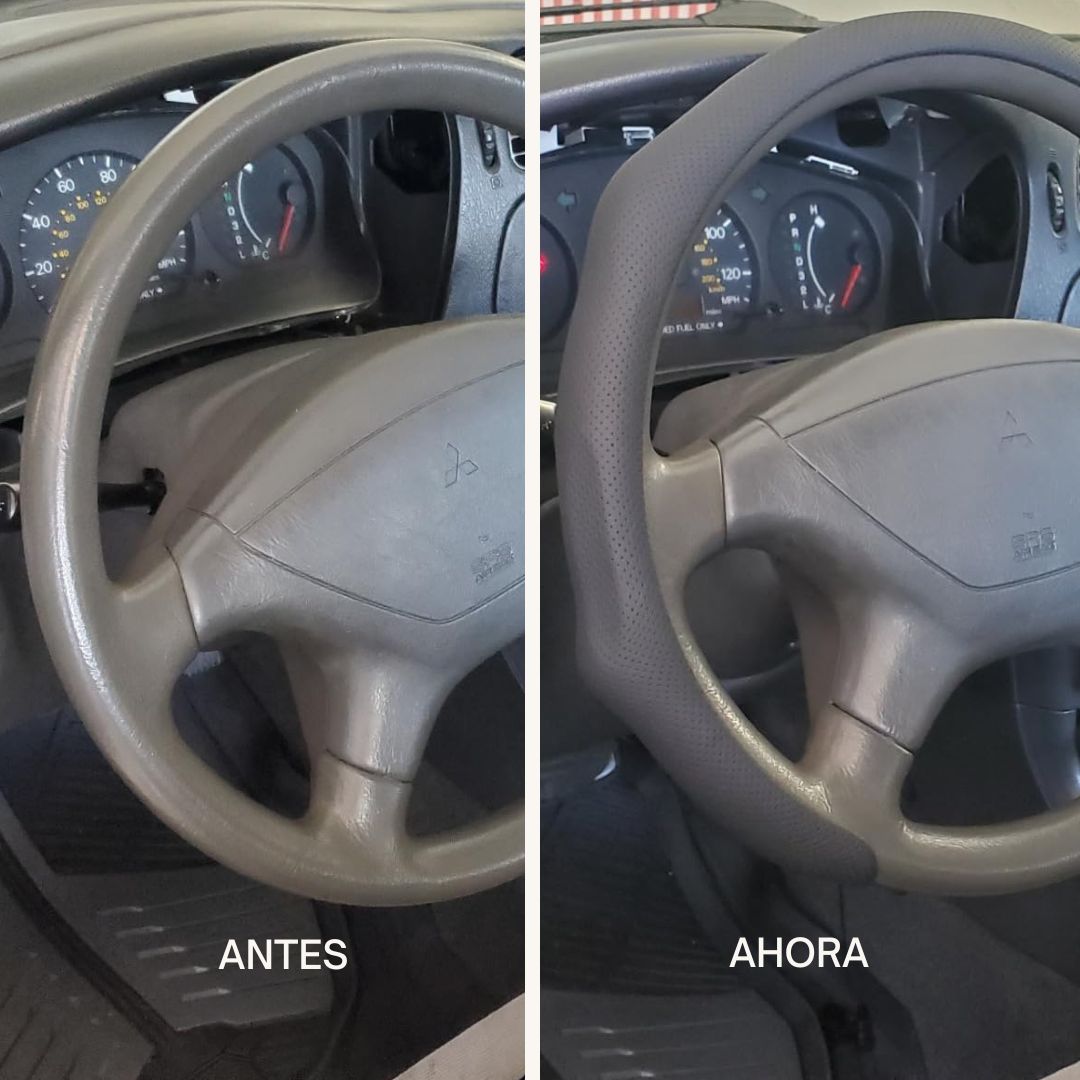 Antes: un volante desgastado, estándar y con mal agarre debido al uso.