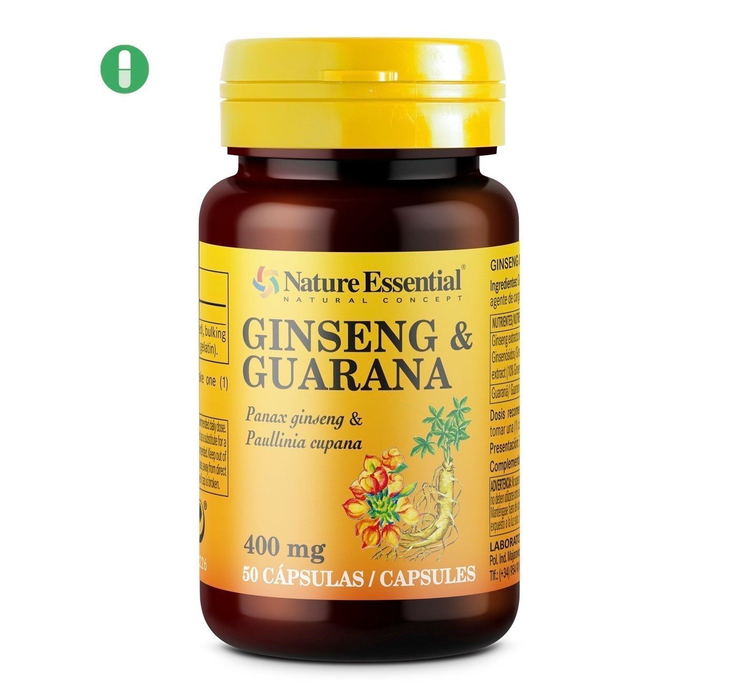 🌿 INGREDIENTES NATURALES: Fórmula que combina ginseng y guaraná, ingredientes populares en suplementos utilizados tradicionalmente para la vitalidad y el bienestar general.